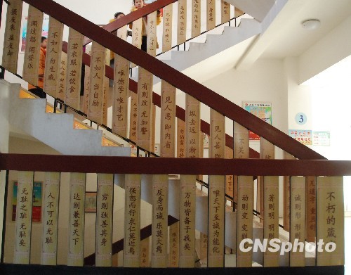 组图:弟子规道德经“挂上”校园楼梯护栏(2)