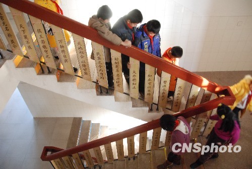 组图:弟子规道德经“挂上”校园楼梯护栏(3)