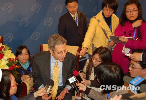 1月7日,美国学者、2007年诺贝尔经济学奖获得者埃里克·马斯金出席在广西南宁举行的中国—东盟自贸区论坛,受到媒体热捧。中新社发 刘万强 摄