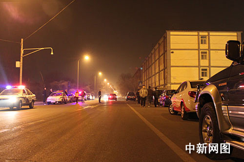 1月7日23时许,兰州石化公司石油化工厂发生爆炸近6小时后,厂门口马路边仍有许多媒体记者正等候新消息。张玉玺 摄