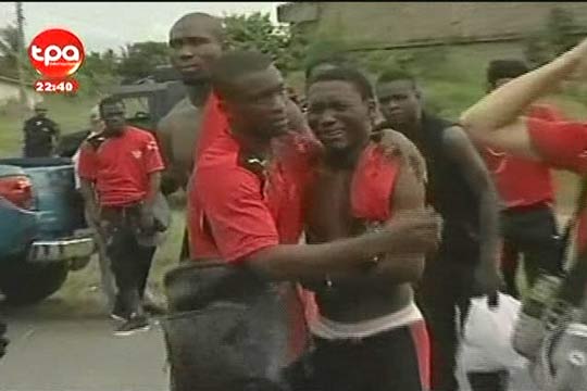 1月8日,准备参加非洲国家杯的多哥足球队乘坐的大巴在安哥拉首都罗安达遇枪手袭击,司机当场身亡,另有9人受伤。 一位多哥球员事后说“当时所有人都把身子藏在座椅下,车外的警察随即开枪还击。我觉得好像战争爆发了似的,吓坏了,当我们从车上下来时感到一片茫然。”图为电视台公布的现场视频截图。