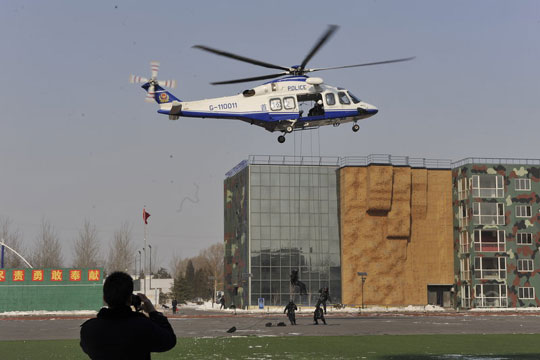 参观者们还观看了难得一见的警用直升机索降表演。董世彪 摄