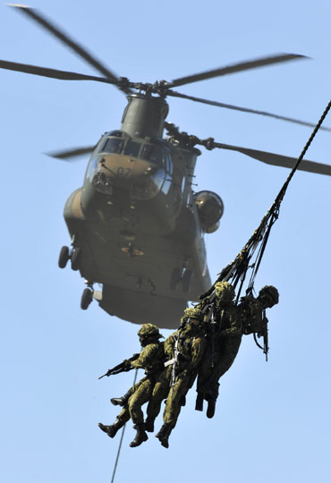 1月10日,日本千叶县,日本陆上自卫队第一空降旅在习志野训练场进行新年演练。