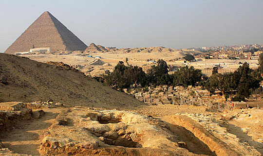 图为胡夫金字塔附近发现的工人墓穴。