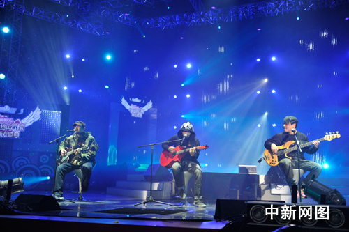 图为张震岳在新人盛典现场演唱。中新网记者 金硕 摄