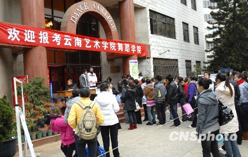 图为考舞蹈的高考考生,早晨七点就排起了大队侯考,等待考官的点名。中新社发 田洪 摄