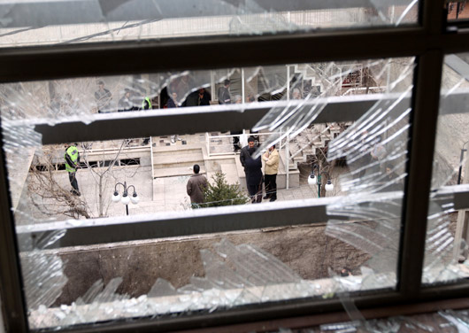 伊朗一名核物理学家十二日遭爆炸袭击身亡。德黑兰指责这起暗杀事件是美国和以色列特工所为。图为爆炸现场附近的玻璃窗被震碎。