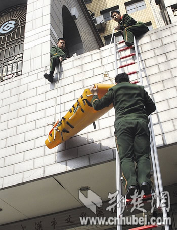 12时30分许,汉正街消防官兵赶到。架梯翻进平台后,发现太婆神志清醒,遂将老人固定在救援担架上,再用担架缓缓降落,送上地面等待的120救护车。