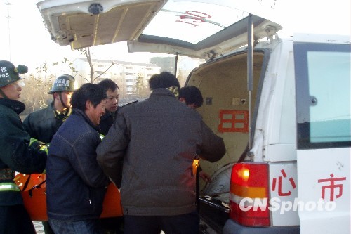 消防官兵成功救出落水老人并抬上救护车。中新社发 万善朝 摄