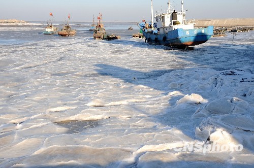 连云港沿海出现大面积冰海奇观。中新社发 王春 摄