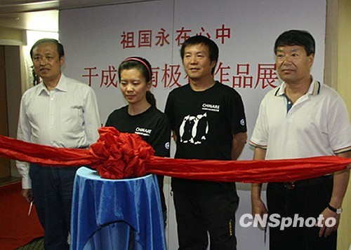 徐绍史部长、孙志辉局长为于成松南极行作品展剪彩。中新社发 张玫 摄