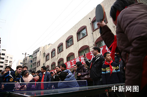 图:马琳等乒坛高手看望四川灾区儿童(4)