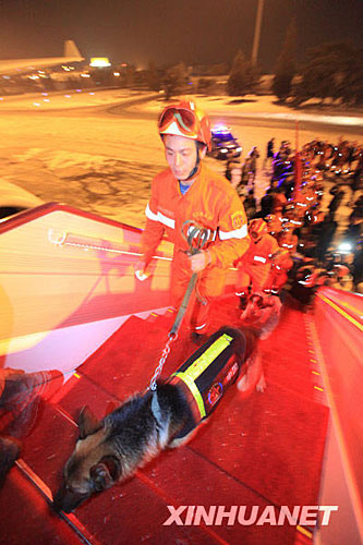 中国国际救援队队员在首都机场登机,前往发生强烈地震的海地执行救援任务。邢广利 摄