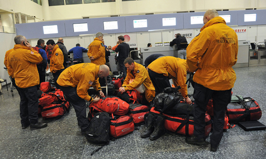 图为英国救援队。海地发生强烈地震,伤亡惨重,国际社会在第一时间纷纷伸出援手。中国、美国、法国等多个国家和地区的救援队已集结完毕,奔赴海地地震灾区。