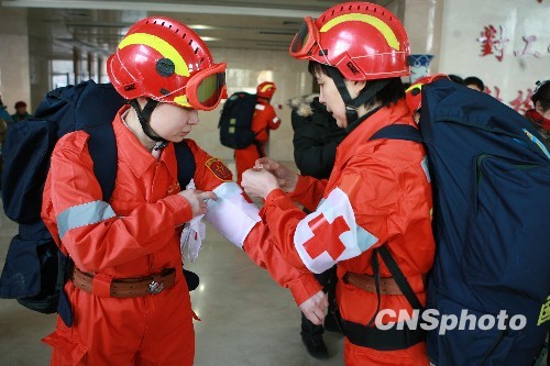 1月13日晚20点30分,中国国际救援队从北京飞赴海地地震灾区,执行国际救援任务,此次任务的救援队员共60人,其中包括4名女医疗救援队员。这次赴海地地震灾区,是中国国际救援队自去年11月获联合国国际重型救援队资格认证后第一次赴国外开展救援行动,也是自组建来飞行路程最远的一次救援行动。中国国际救援队副总队长兼医疗分队队长侯世科说,到达海地之后将重点进行现场急救和重伤员抢救,创新救援医疗装备将首次应用于国际灾害医疗救援。中国国际救援队又称国家地震灾害紧急救援队,成立于2001年4月27日。中新社发 吴敏 摄