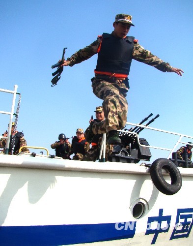 图为浙江海警进行世博会安保处突演练现场。中新社发 索向鲁 摄