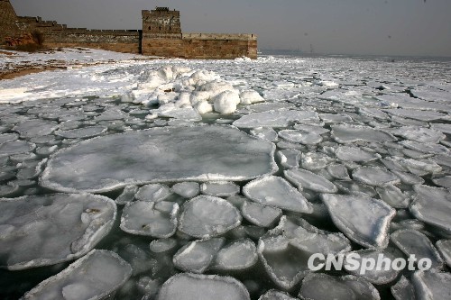 近日,由于中国北方遭遇的罕见低温寒潮天气,河北省秦皇岛地区最低气温在零下20度徘徊。长长的海岸线被冰雪掩盖,海面浮冰绵延数百米。