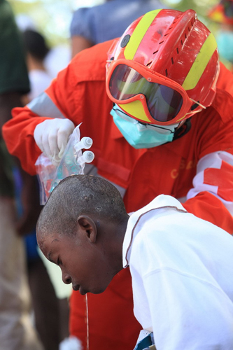 中国国际救援队在海地开展医疗救助。邢广利 摄
