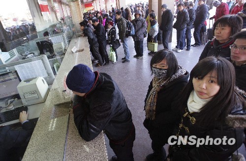 1月15日,距离春运还有半个月,北京火车站返乡的旅客明显增多,铁路春运进入倒计时。图为北京火车站室外售票处排成了购票的长队。中新社发 刘震 摄