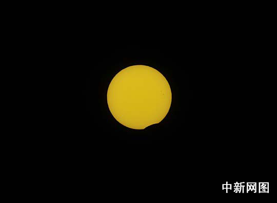 图为15:35分,北京拍摄到的日食初亏。中新网记者 金硕 摄