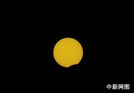 图为15:35分,北京拍摄到的日食初亏。中新网记者 金硕 摄