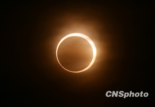 1月15日下午,“千年日环食”天文奇观如约上演,环食带从云南省入境,主要经过四川、重庆、湖北、河南、山东。中新社发 王中举 摄