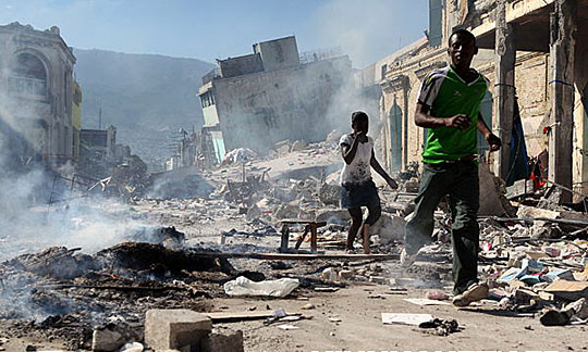 图:海地震后一片狼藉 灾民争抢食物(4)