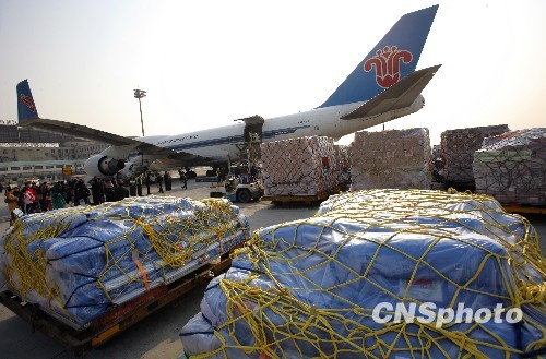 中国政府援助海地首批价值3000万元人民币物资启运。中新社发 刘震 摄