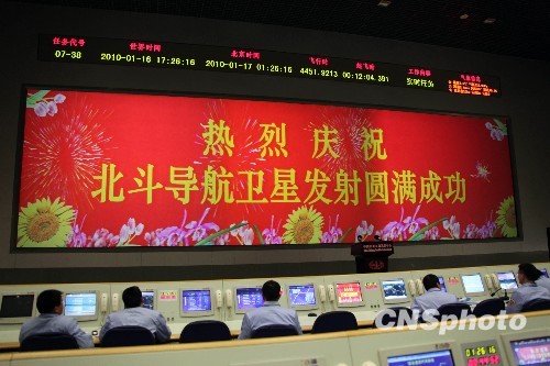 指控大厅庆祝发射圆满成果。中新社发 孙自法 摄