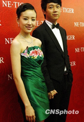图为演员董洁潘粤明夫妇亮相皮草秀。中新社发 远舟 摄
