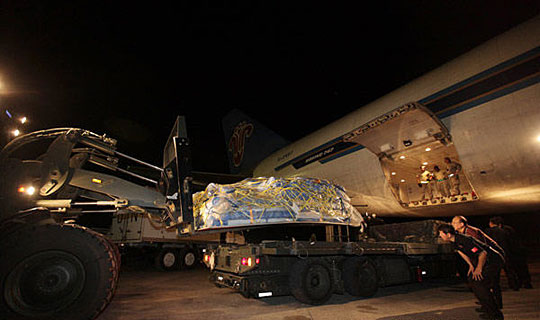 1月17日,在海地太子港,工作人员在卸货。邢广利 摄