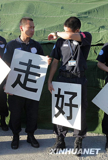 在海地太子港,两名中国驻海地维和部队官兵在营地为战友送行。邢广利摄