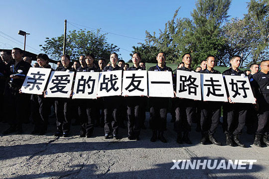 1月17日,在海地太子港,中国驻海地维和部队官兵在营地为战友送行。邢广利摄