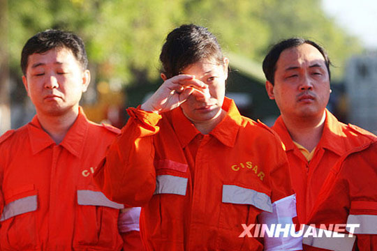 1月17日,在海地太子港中国驻海地维和部队营地,中国国际救援队的队员为在海地地震中遇难中方人员送行。邢广利摄