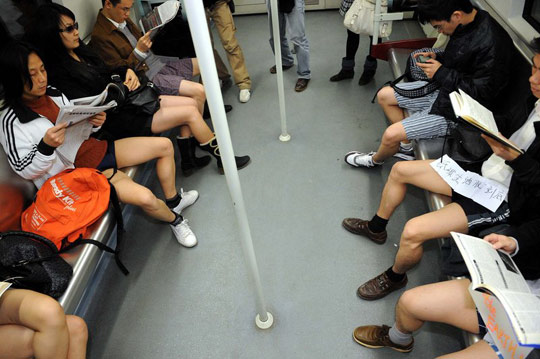 广州网友不穿裤子搭地铁 宣传低碳生活(3)