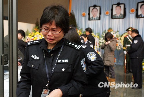 1月18日,中国公安部设立悼念堂,和社会各界共同缅怀在海地地震中牺牲的8名维和英雄。当日下午开始,公安部机关干部和北京公安机关的干警陆续前来悼念英烈,缅怀战友。中新社发 刘震 摄
