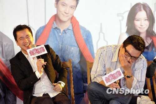 图为发布会现场,王中磊、陈国辉几乎笑趴。中新社发 李学仕 摄