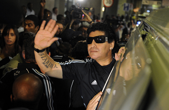 1月18日,阿根廷国家足球队主教练马拉多纳和阿根廷足协代表团抵达南非约翰内斯堡。阿根廷代表团一行将在南非逗留五天,他们将考察阿根廷足球队在2010年世界杯比赛中使用的场馆和设施,期间代表团将在茨瓦尼市和索维托地区举办一些慈善活动。