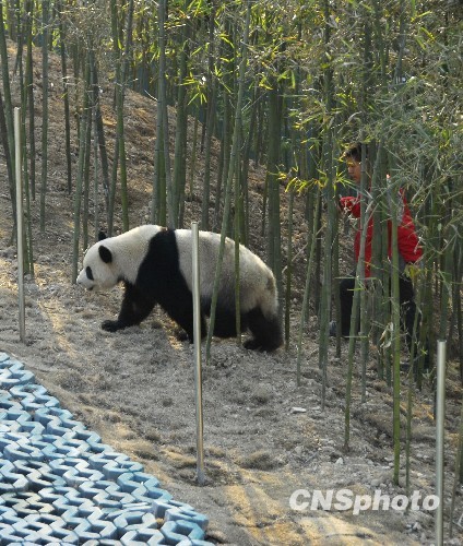 图:浙江温岭奥运大熊猫开始馆外适应生活(2)