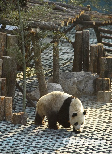 图:浙江温岭奥运大熊猫开始馆外适应生活(3)