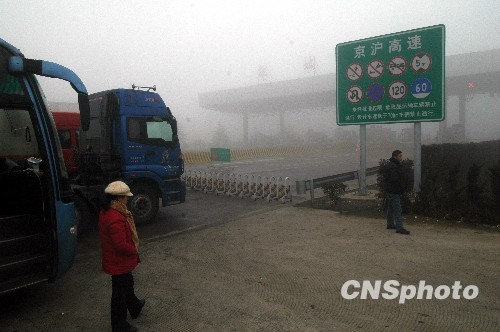 京沪高速公路郯城出入口被迫关闭。 中新社发 房德华 摄