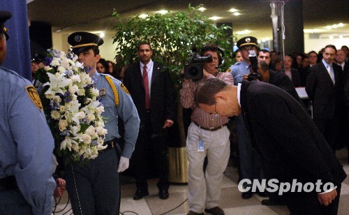 联合国举行仪式向海地稳定特派团死难职员敬献花圈。中新社发 孙宇挺 摄
