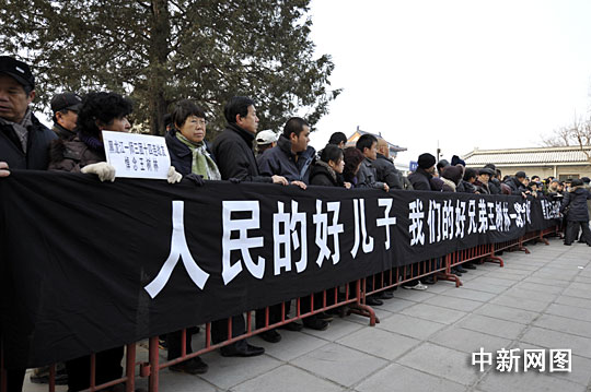 图为北京各界民众自发在八宝山革命烈士灵园门口等待送别中国维和英烈。中新网记者 金硕 摄