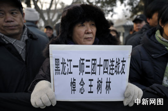 图为北京各界民众自发在八宝山革命烈士灵园门口等待送别中国维和英烈。中新网记者 金硕 摄