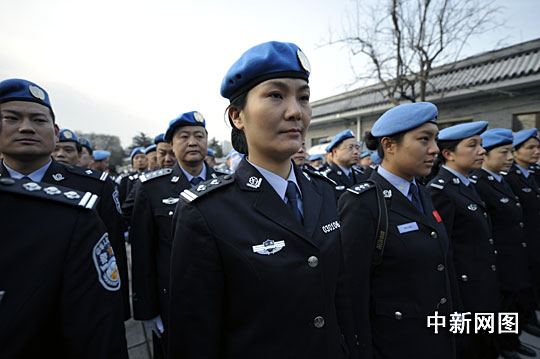 图为昔日中国维和警察队员再次穿起维和警服,送别牺牲的战友。中新网记者 金硕 摄