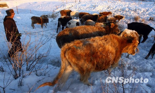 近日,新疆北部出现了60年一遇的连续暴雪降温天气,积雪深度普遍在50厘米以上,山区积雪更是深达1米至2米,低温降至零下40摄氏度以下,给当地群众生活及畜牧业生产造成一定影响。中新社发 刘新 摄