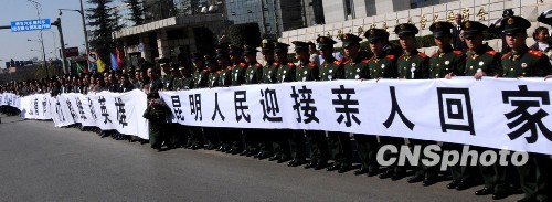 图:三名维和烈士骨灰运抵昆明(4)