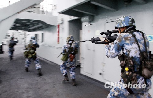 1月22日,南海某海域,南海舰队某部组织官兵进行直升机海上滑降和海上实弹射击训练。通过训练,提高官兵单兵实战水平和应对海上突发事件的能力。中新社发 刘林 摄