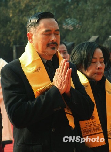一月二十二日,正值电影《孔子》在中国全国公映日,剧中孔子的饰演者著名表演艺术家周润发及《孔子》剧组全体人员风尘仆仆赶到孔子故里——山东曲阜,在孔庙大成殿前举行了庄重的祭拜孔子仪式。