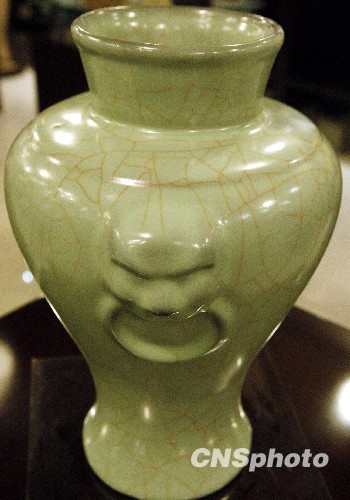 图为中国非物质文化遗产“汝窑”、“官窑”珍品展作品《虎头瓶》。中新社发 钱兴强 摄